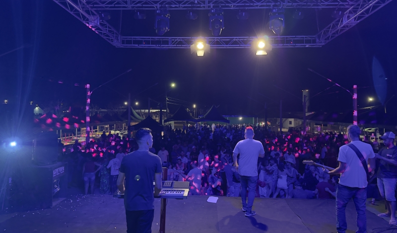 À noite, o público foi animado com apresentações de artistas locais, seguidas por um show nacional com a banda Os Traiados, que agitou a multidão no Parque de Exposições.