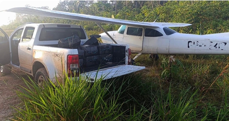 Durante a ação, os agentes localizaram oito fardos com a droga, que haviam sido descarregados de uma aeronave modelo C172 monomotor e escondidos em uma área de mata. Além da droga e do avião, também foram apreendidos objetos utilizados para o armazenamento do entorpecente.