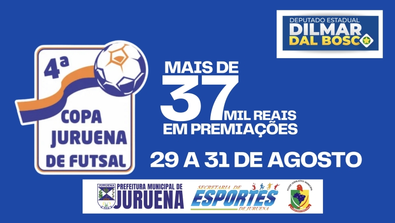 Juruena (MT) será palco de mais uma grande competição esportiva. Entre os dias 29 e 31 de agosto, acontece a 4ª Copa Juruena de Futsal, reunindo 20 equipes masculinas e femininas em busca do título.